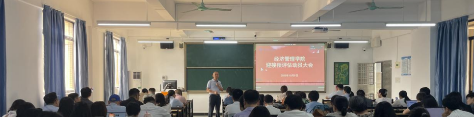 为迎接即将于十月中下旬到来的学校本科教学工作合格预评估,2025年10月9日,经济管理学院召开全院教职工参加的迎接预评估动员大会。会议旨在进一步统一思想、明确目标、落实责任,凝聚全院之力,确保预评估各项准备工作高质高效推进,为学校本科教学工作的整体提升贡献经管力量。
