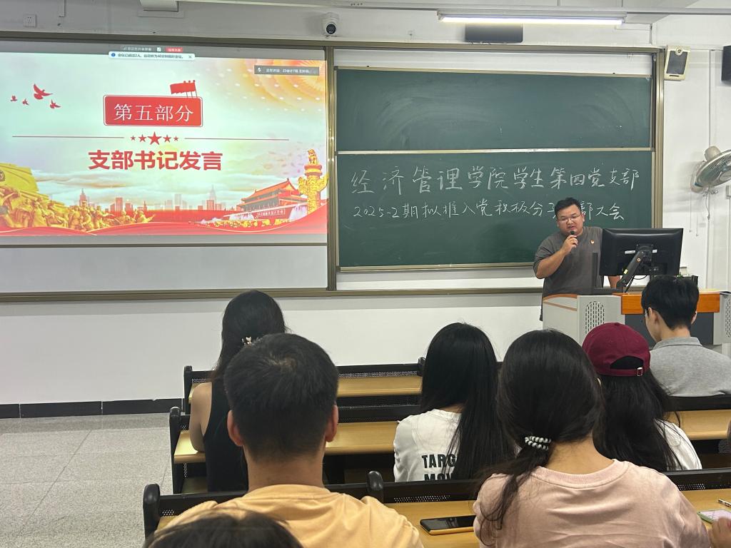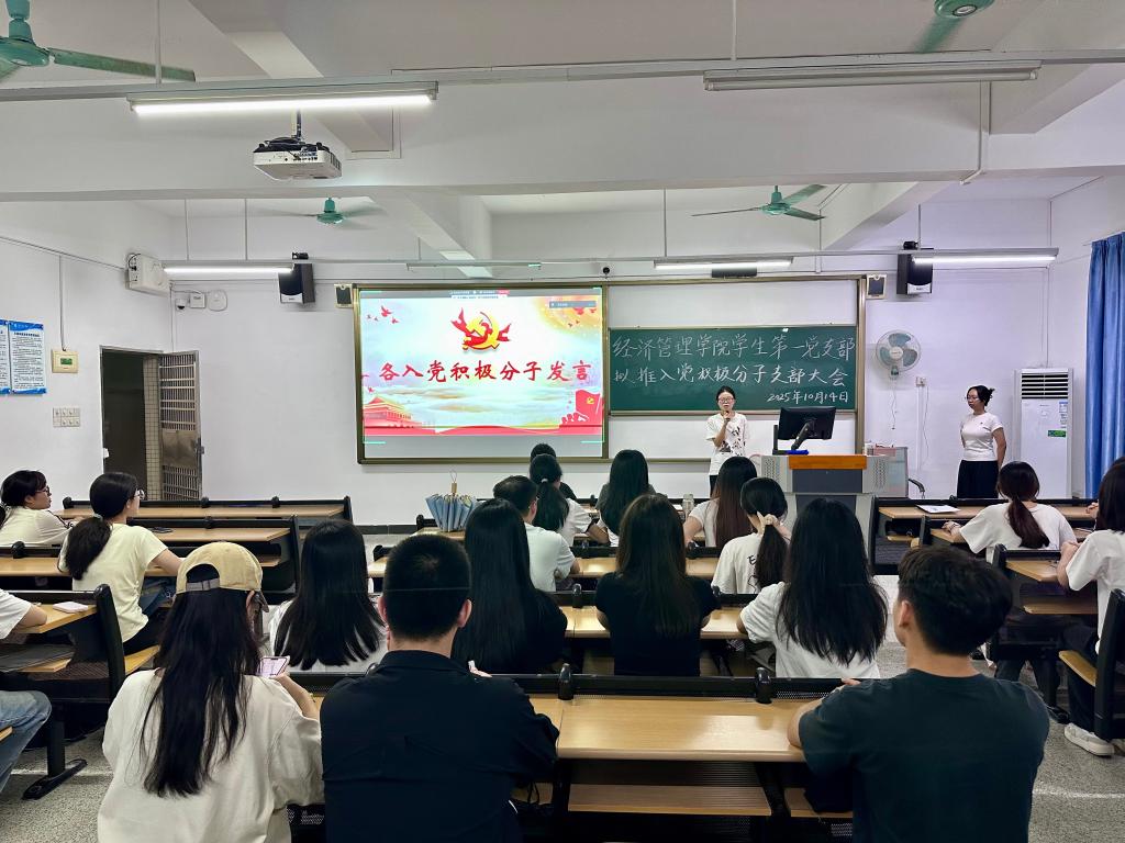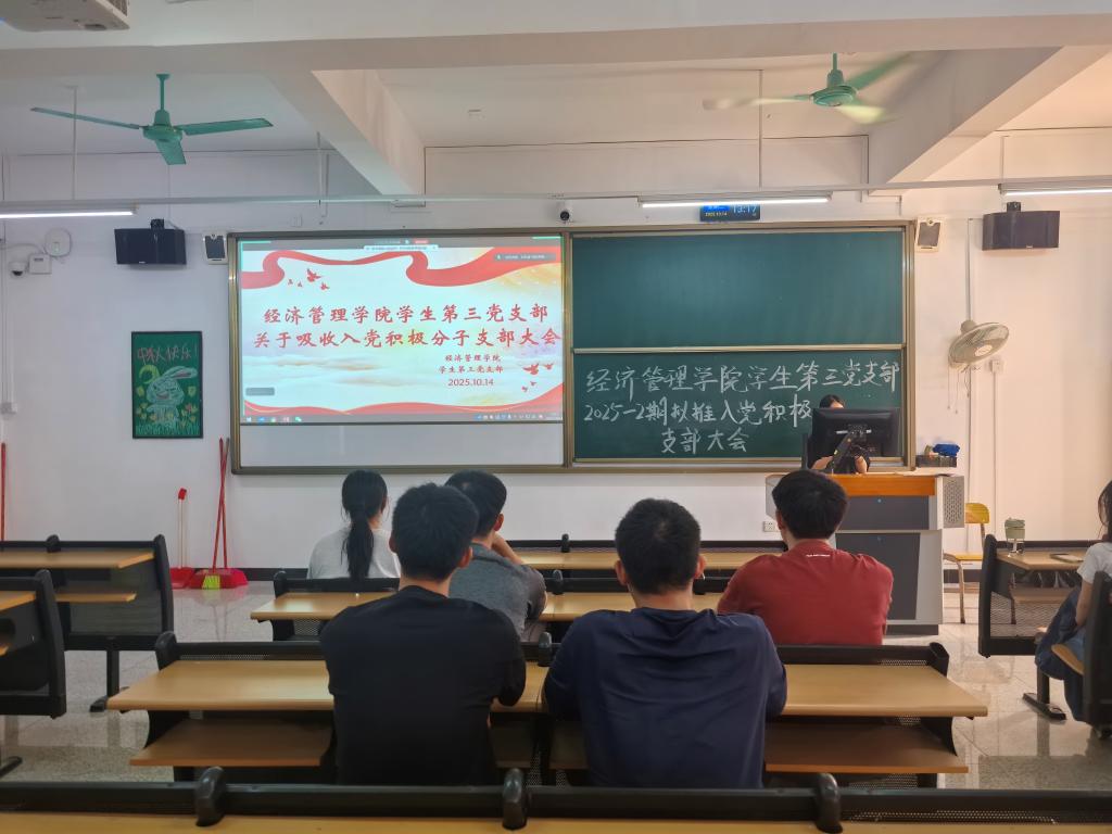 (通讯员:杨凯岚)为进一步加强党组织建设,吸纳优秀青年学生向党组织靠拢,2025年10月14日,经济管理学院学生各党支部分别于1栋905、906、907教室召开拟推入党积极分子支部大会。本次大会采用线上线下融合模式,重点讨论并确定本学期入党积极分子名单,为党组织培育新鲜血液。