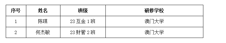 经个人申请,学院审核,以下2名同学符合赴澳门大学短期研修要求,增补推荐以下2名同学赴澳门大学进行短期研修: