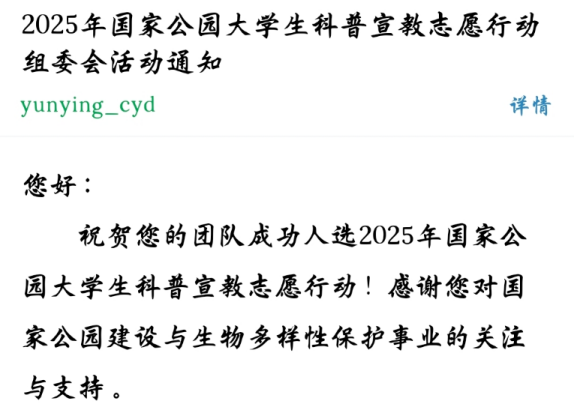 生态践使命,科普启新程——志愿团队深耕科普宣教,奏响国家公园生态强音。接下来,团队成员将接受系统培训,深入理解国家公园生态价值,并围绕生物多样性保护主题,开展形式多样的科普宣讲与社会实践活动。让我们共同期待,这支年轻的队伍用青年的视角和专业的态度,在国家公园的舞台上,讲好生态故事,传递青年声音,将生态文明种子播撒进更多人的心中!