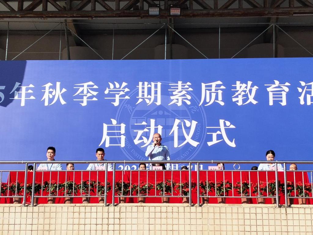 (通讯员:温凯晴,范晓殷)2025年11月17日上午8:00,广州理工学院2025年秋季学期素质教育周启动仪式在白云校区大运动场隆重举行。本次启动仪式出席嘉宾有校党委书记黄圣诚、副校长张志红、各机关职能部门、各二级学院院长及党总支书记和23级全体师生共同见证这一活动的开启。