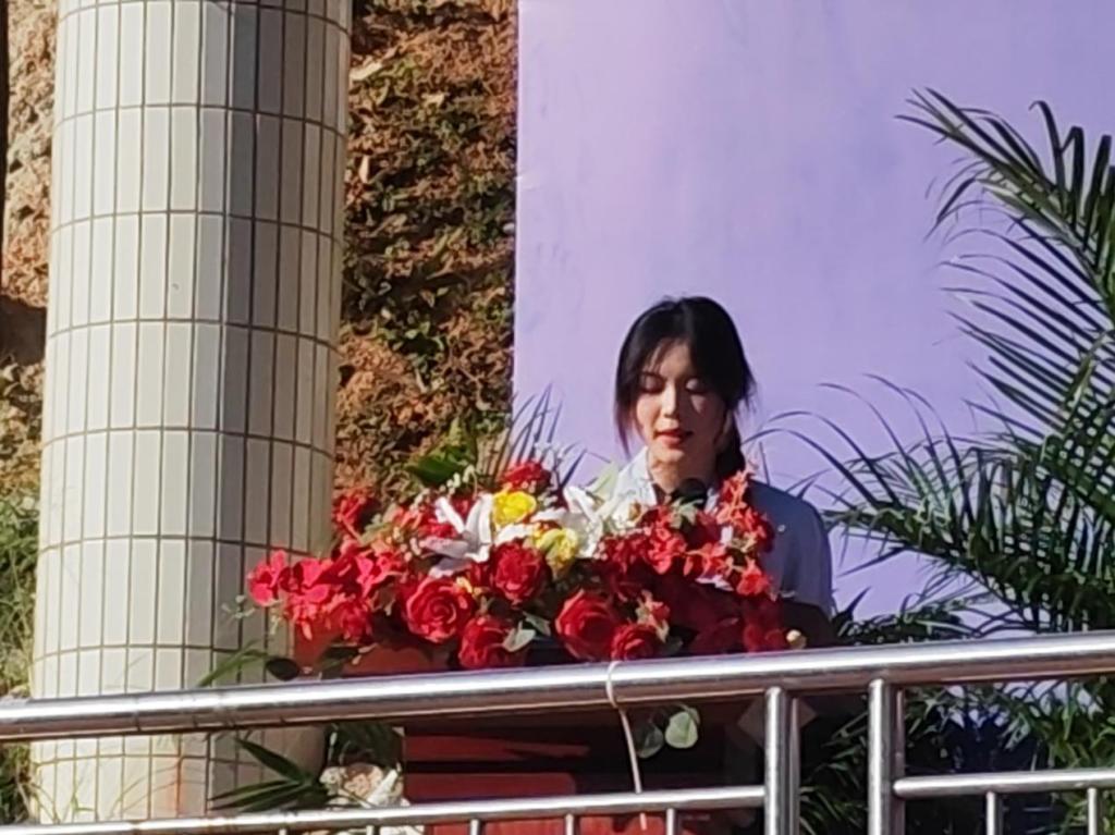 大会第五项议程,授旗仪式。校领导为学生代表郑重授旗,旗帜飘扬,传递使命,激励着众人奋勇向前、担当作为。