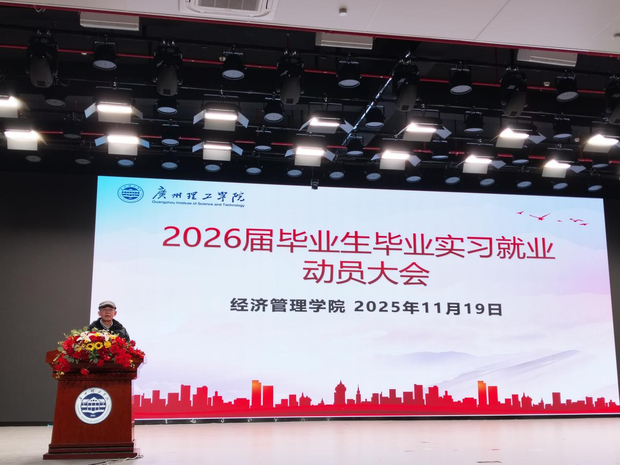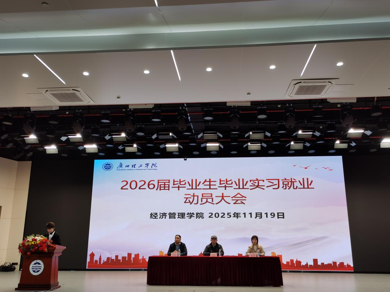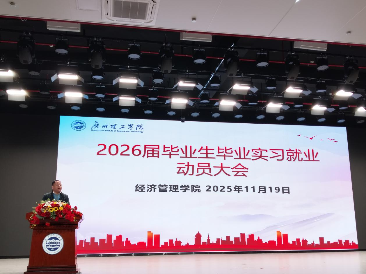 (通讯员:温凯晴、范晓殷)2025年11月19日下午4:00,广州理工学院经济管理学院在1号报告厅成功举办了2026届毕业生毕业实习就业动员大会。经济管理学院院长谢林林、党总支书记彭康煜、副院长陈少英、各毕业班辅导员和班导师以及2026届全体毕业生齐聚一堂,共同部署即将到来的毕业实习与就业相关准备事宜。大会旨在帮助毕业生明确目标,为顺利步入社会奠定坚实基础。