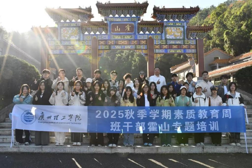 (通讯员李倩)为深入贯彻立德树人根本任务,强化学生骨干队伍建设、提升班级管理效能,11月21日上午,广州理工学院2025年秋季素质教育周第四期“霍山”学生骨干培训班在霍仙峰酒店正式开班。作为学校统一组织的第四批集体素质教育活动,本期培训为期三天,经济管理学院的各班团支书、班长及带队辅导员共计百余人参训。课程采用“专题授课+经验分享+户外拓展”的立体化设计,为学生骨干搭建学习交流、能力提升的优质平台。