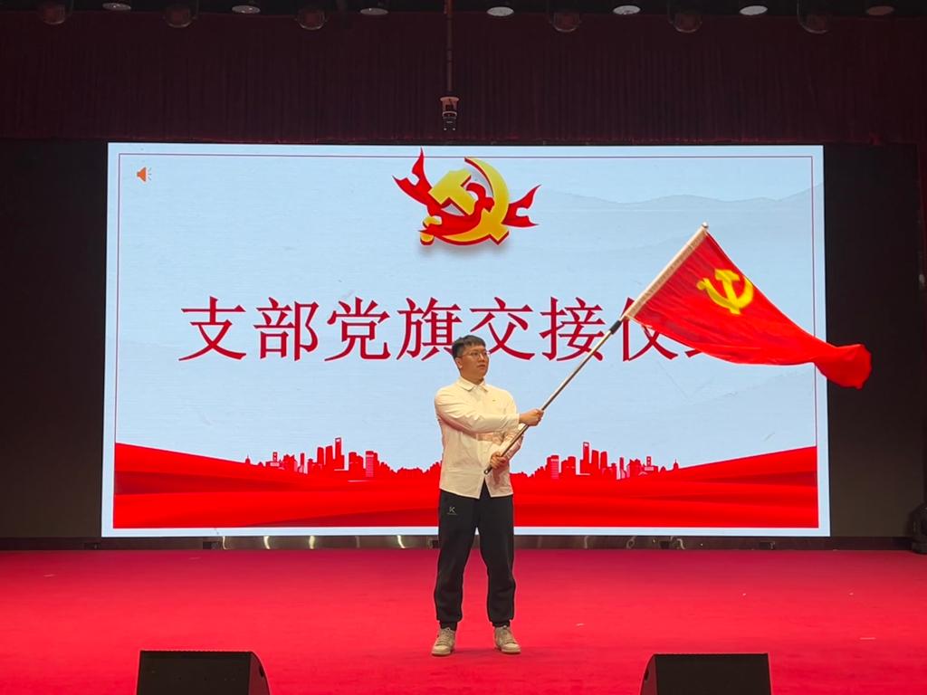 党总支组织员兼学生第四党支部书记余江老师及各学生党支部新任支委们进行党旗交接仪式。党旗交接,是庄严的承诺与责任的传递。鲜红的旗帜在会场中央被郑重交接,象征初心不渝、薪火相传。这一刻,使命与荣光在无声中交接,激励全体党员继续奋进,共同书写党支部委员会发展新篇章。随后,由薛嘉昊同志带领新任支委重温入党誓词。全体党员面向党旗,庄严举起右拳,重温入党誓词。铿锵有力的宣誓声回荡在会场中,字字千钧,提醒着每一名党员不忘初心、牢记使命,以坚定的信念与实际行动践行对党的忠诚承诺。