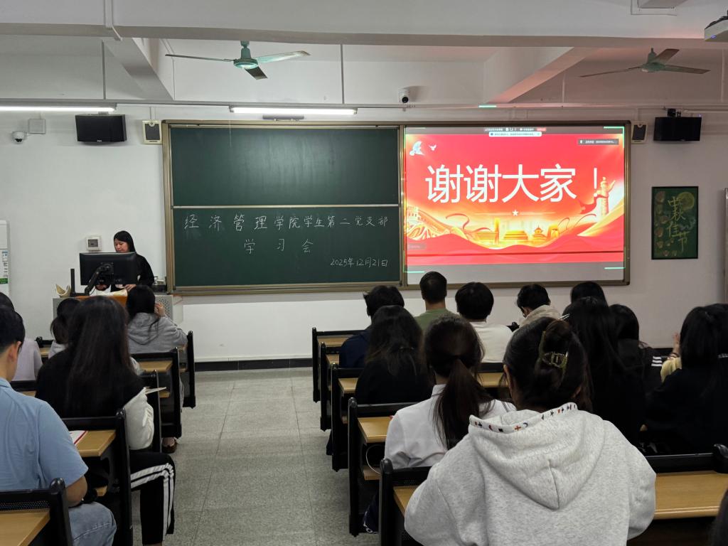 12月21日,经济管理学院学生第二党支部在1栋904教室召开“持续抓好中央八项规定精神贯彻落实推进作风建设常态化长效化”专题学习会。