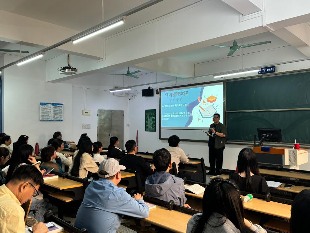 为确保新学期各项工作开好局、起好步,扎实推进本科教学工作合格评估准备,2026年2月27日下午,经济管理学院会计学系在召开了2025-2026学年第二学期期初工作部署暨本科教学工作合格评估推进会。会议由会计学系朱文翰主任与左丹主任助理共同主持,全系教师参加会议。