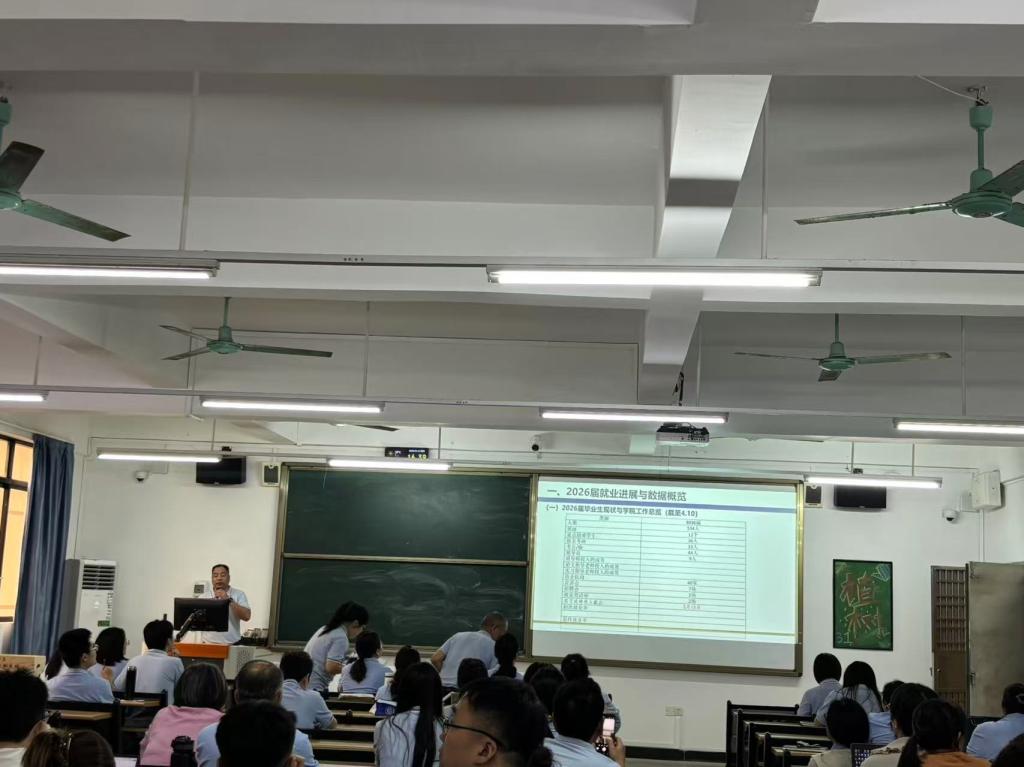 随后,会议重点解读了上级就业政策与行动方案。彭康煜书记详细阐述了《2026年广东省高校毕业生就业创业十大行动方案》的核心要点。他强调,全体教师必须认真学习领会政策精神,把握“重点行业扩岗”“政策岗位快招”“基层就业引导”“创新创业支持”等关键方向,以及学校方案中“加力拓展就业渠道”“优化人岗对接服务”“强化兜底帮扶援助”等具体措施,将政策红利切实转化为促进毕业生就业的实际成效。