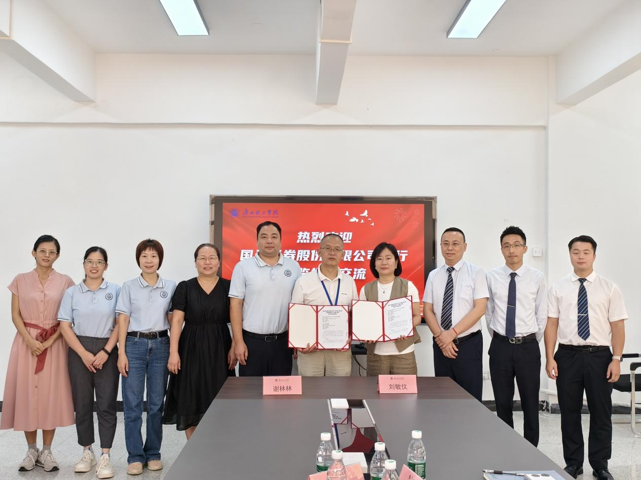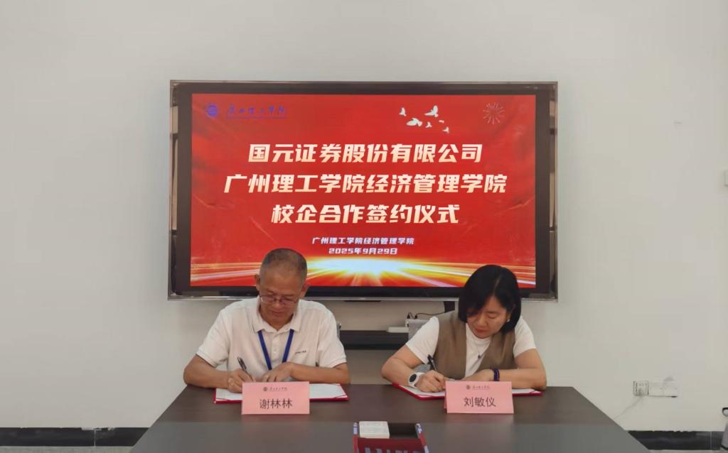 (通讯员:戴冬歌)2025年9月29日,广州理工学院经济管理学院与国元证券股份有限公司广州江南大道中路证券营业部,在我校1-913会议室隆重举行校企合作协议续约签约仪式。经济管理学院院长谢林林、党委书记彭康煜、副院长李美珍、副院长陈少英、金融系系主任黄爱青,以及专任教师戴冬歌、陈树洁出席会议;国元证券广州江南大道中路证券营业部总经理刘敏仪、总经理助理黄峻、营销总监刘业成、财富经理祝愿代表企业方参会。双方阵容齐整,共同见证合作新阶段的开启。