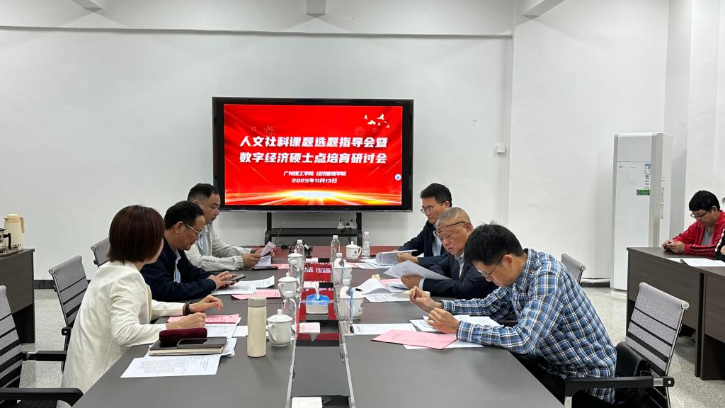 11月13日下午,广州理工学院经济管理学院举办“人文社科课题选题指导会暨数字经济硕士点培育研讨会”。广东技术师范大学财经学院吴松书记、钟晓君教授,中南财经政法大学朱华雄教授应邀到会指导,我校张日新副校长出席,学院彭康煜书记、各系主任及科研骨干教师参会,科研副院长陈少英主持。与会专家围绕两大议题展开研讨:一方面精准导航人文社科课题申报,另一方面深入论证数字经济硕士点三大方向,为学院学科建设与人才培养奠定坚实基础。