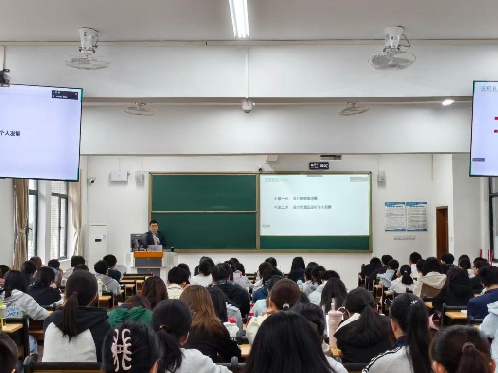 (通讯员:韦欣、尹昕愉)2025年11月18日,经济管理学院于各班级教室有序开展“会计的宏观环境与职业发展”讲座。2025级会计专业全体学生在董老师的带领下,共同探索行业发展底层逻辑,明晰职业成长路径,开启了一场融合理论知识与实践经验的专业提升之旅。