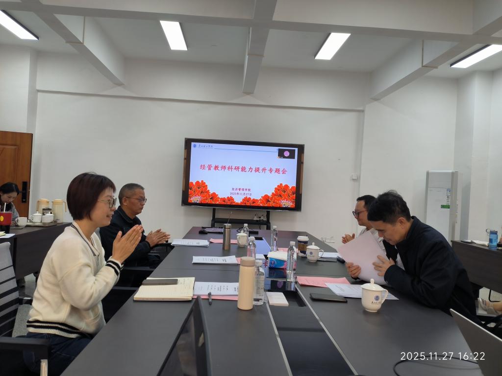 此次“经管教师科研能力提升专题会”不仅是一场知识的盛宴,更是一次凝聚共识、鼓舞士气的动员会。它充分体现了学校、学院对科研工作的高度重视和对教师专业成长的深切关怀。相信通过本次会议,经济管理学院全体教师必将进一步拓宽学术视野,激发创新思维,提升科研自信,以更饱满的热情和更扎实的功底,积极投身到高水平科学研究中,共同谱写我院科研事业发展的新篇章!