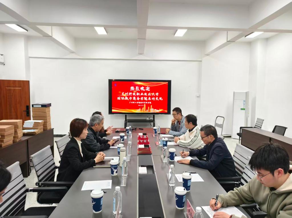 为深化校际合作,共探实践教学创新路径,12月9日下午,广州科技职业技术大学国际数字商务学院副院长李方敏带队,智能工程与未来学院副院长夏建汉、国际数字商务学院电子商务专业主任苗德宏、学校采购中心科员李展鸿等一行4人莅临我校,就实践教学与实验室建设开展专题调研交流。我校经济管理学院副院长陈少英、工商管理学院副院长倪江崴、国际经济与贸易系主任吴霜、实验员陈树洁及合作供应商公司经理方翠婷热情接待并参与交流。