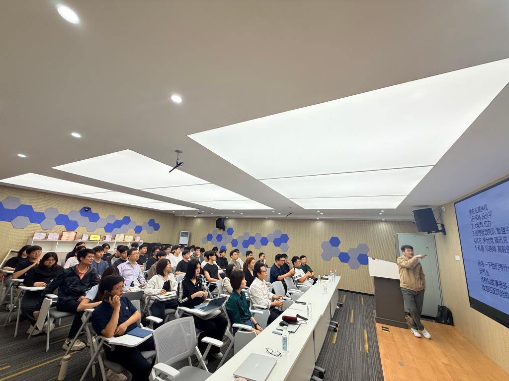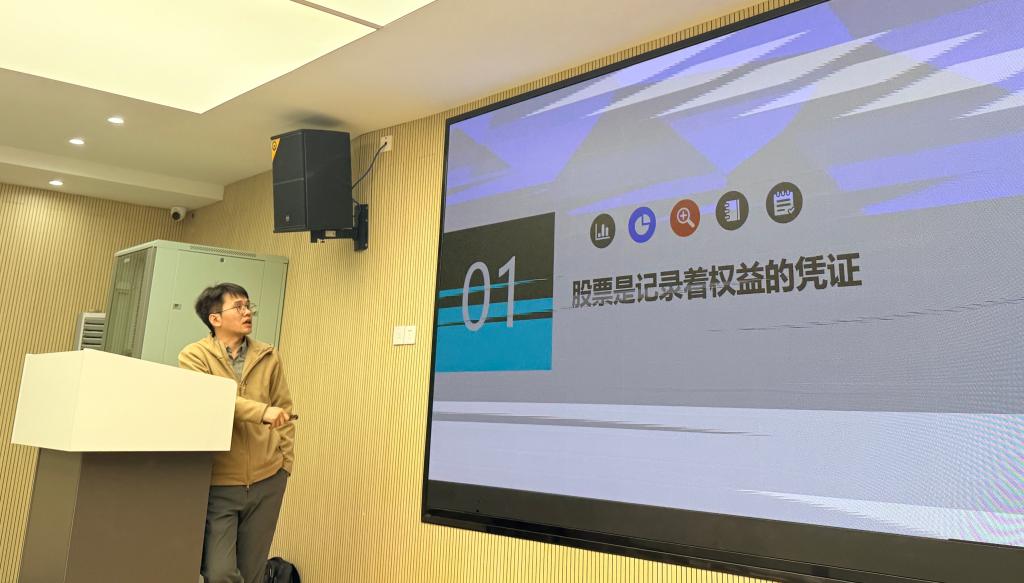 讲座伊始,基金经理刘杰从股票基础概念切入,抽丝剥茧阐释股票本质、持有者核心权益及金融资产的风险收益底层特征,为听众搭建起专业、严谨的金融认知框架;随后,结合资本市场实际案例,深入浅出剖析股票价格的核心决定因素与市场波动逻辑,厘清投资与投机的本质界限,系统讲解多元投资分析方法;同时紧扣业余投资者的实际投资场景,给出兼具实操性与科学性的入市策略、选股技巧,让听众快速掌握可落地的投资方法;最后,他全方位解读二级职业投资人的专业知识体系,拆解职业投研能力的进阶构建路径,从专业视角为师生提升金融投资认知、规划投研能力发展指明方向。