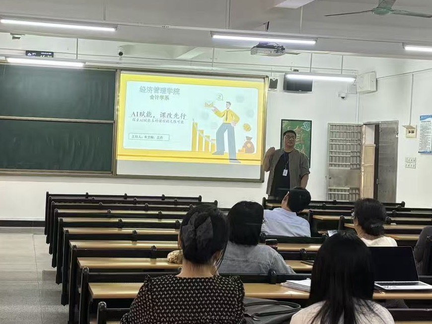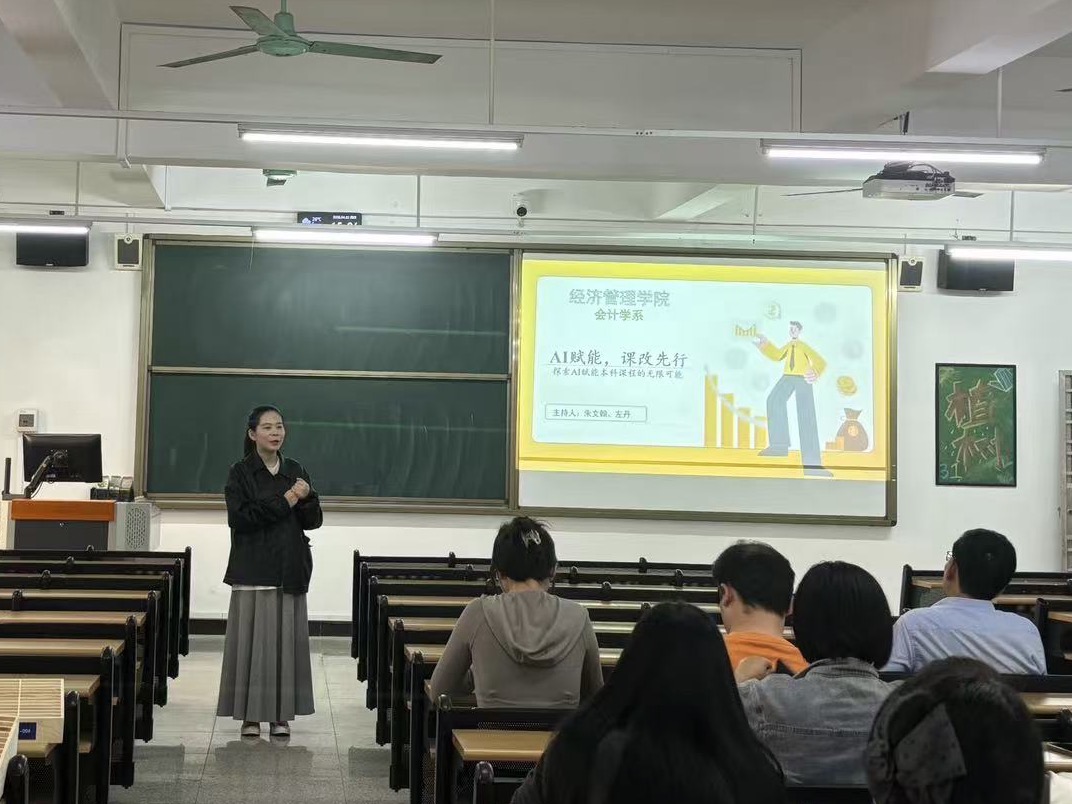 为积极响应教育数字化战略行动,推动人工智能技术与本科课程教学深度融合,进一步提升教师教学创新能力与课程建设水平,4月2日下午,经济管理学院会计学系在1-904教室开展“AI赋能,课改先行——探索AI赋能本科课程的实施路径”专题教研活动。本次活动由会计学系主任朱文翰博士与主任助理左丹老师共同主持,会计学系全体教师参加。