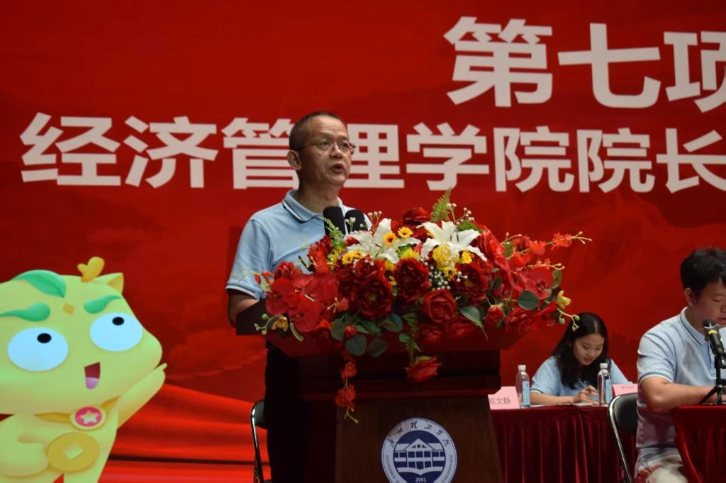 经济管理学院院长谢林林致辞,他首先代表学院对经管院学生代表大会的召开表示热烈的祝贺,也对每位学生代表表示深切的感谢。他强调,学院始终以“立德树人”为根本,贯穿育人全过程。