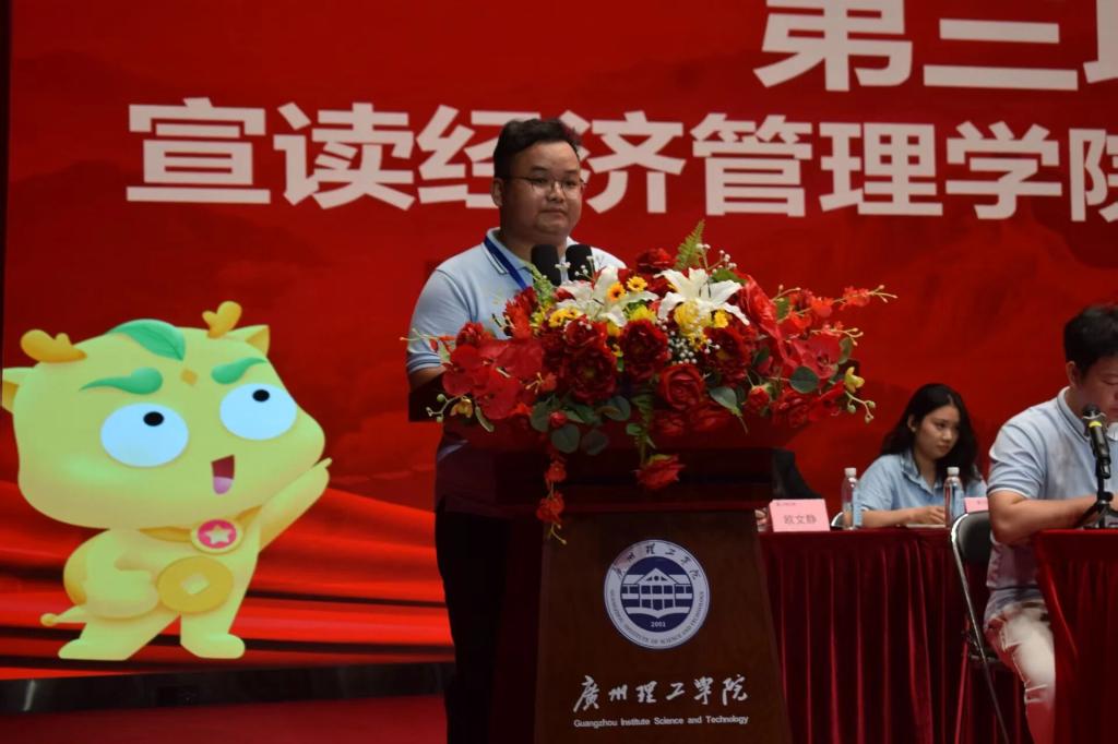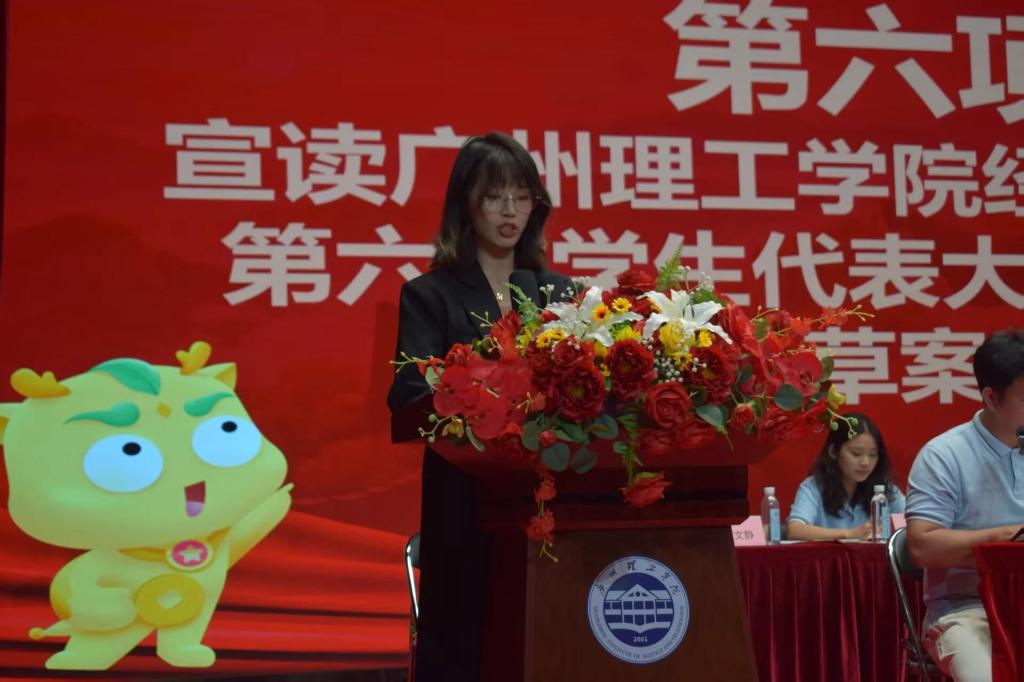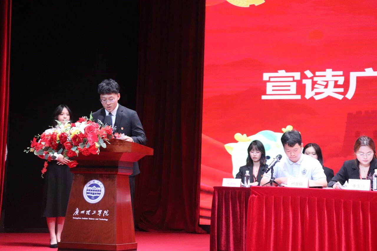 校学生会执行主席林泓江宣读广州理工学院校学生会批复。