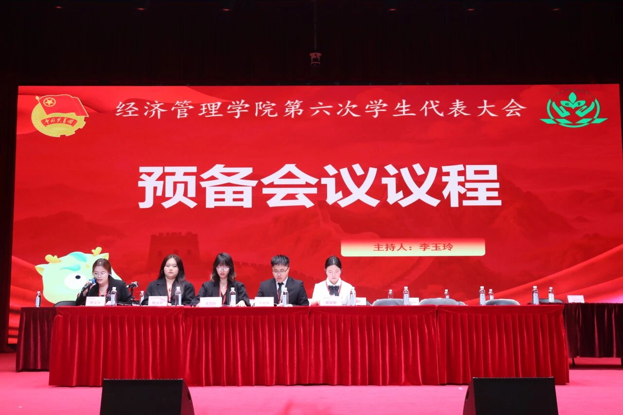 经济管理学院第五届学生会执行主席兼团总支副书记李玉玲作上一届学生会工作报告。首先,她对上一学年学生会工作进行总结,指出在学院领导指引与同学配合下,学生会落实省高校改革要求,精简编制至30人内、明确干部成绩标准,以“思想型、学习型、服务型、创新型”建设为方向,开展新生杯篮球赛、科技艺术节等10余项文体活动,举办跨校参演的“龙腾四海,筑梦远行”元旦晚会,“三下乡”活动获5项国家级荣誉且拓展至省外,同时获校级以上荣誉68项、院校荣誉130余项。
