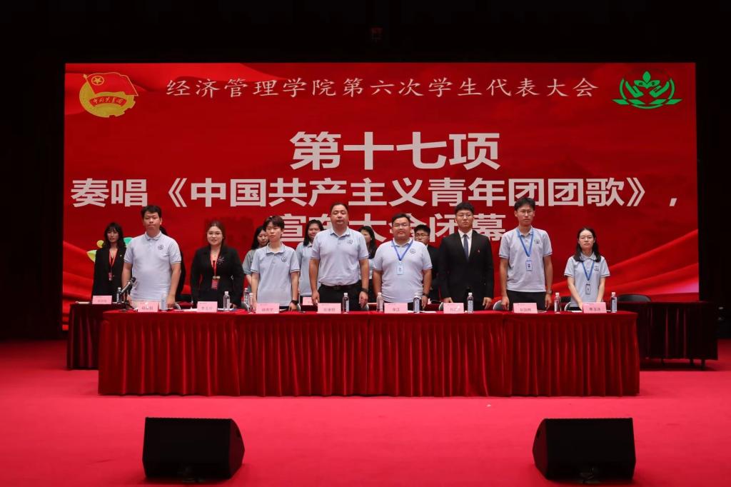 最后,全体与会成员高唱《中国共产主义青年团团歌》。至此,经济管理学院第六次学生代表大会在高昂嘹亮的歌声中圆满结束。
