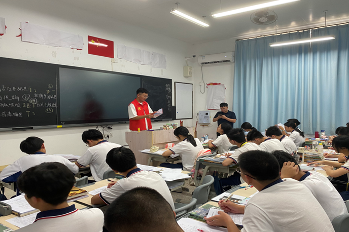紧接着,团队前往龙川实验学校高中部,与学校校长、老师深入探讨资助政策与助学贷款的执行细节;在学校的带领下,队员们走进班级宣讲政策,并在校园显眼处设宣传点,向过往同学发放手册,现场解答“申请条件” “还款方式” 等疑问,帮助学生清晰了解政策内容。