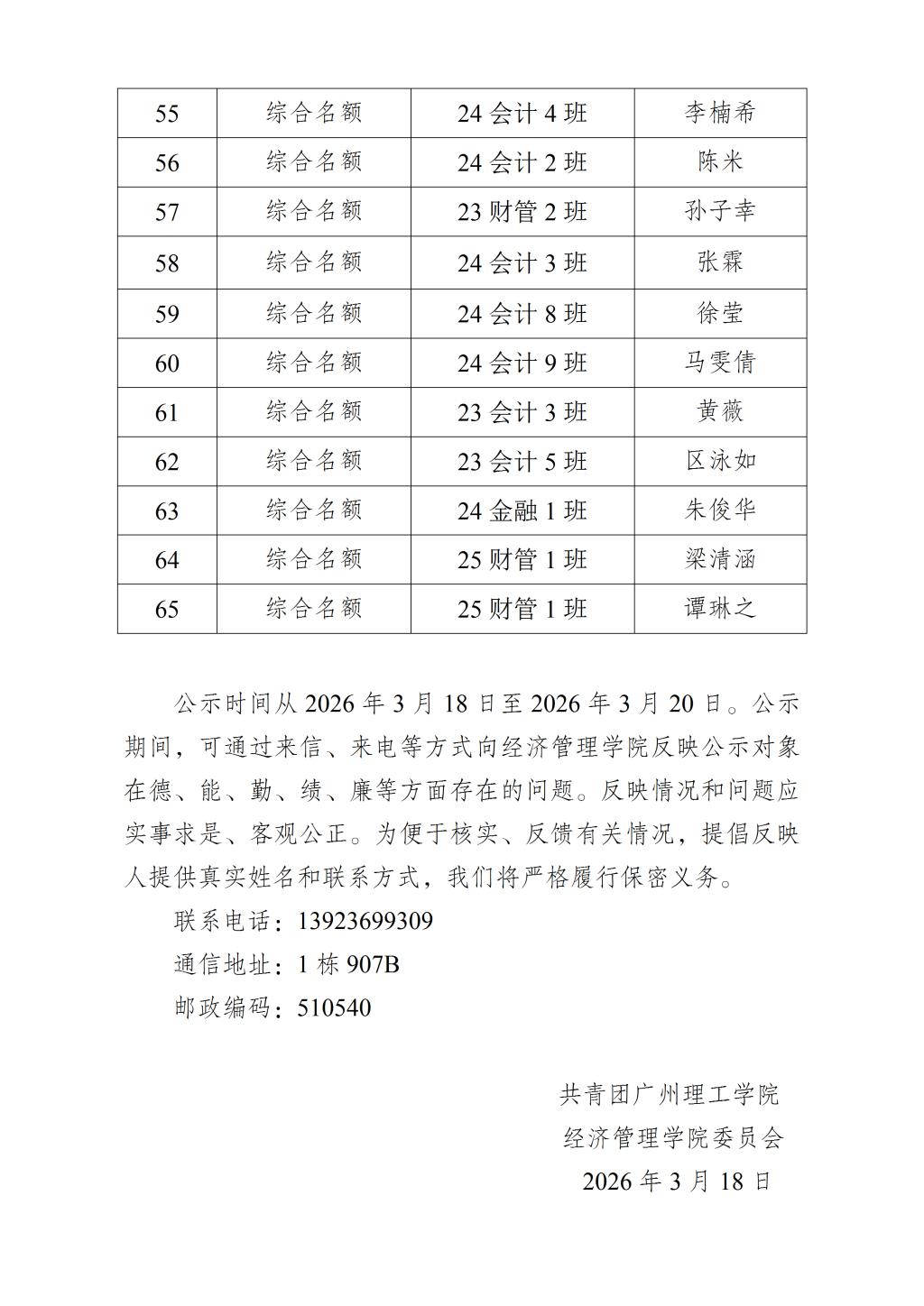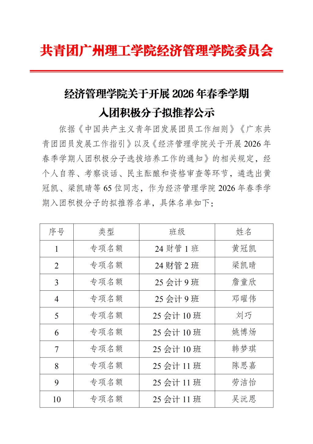 经济管理学院关于开展2026年春季学期入团积极分子拟推荐公示