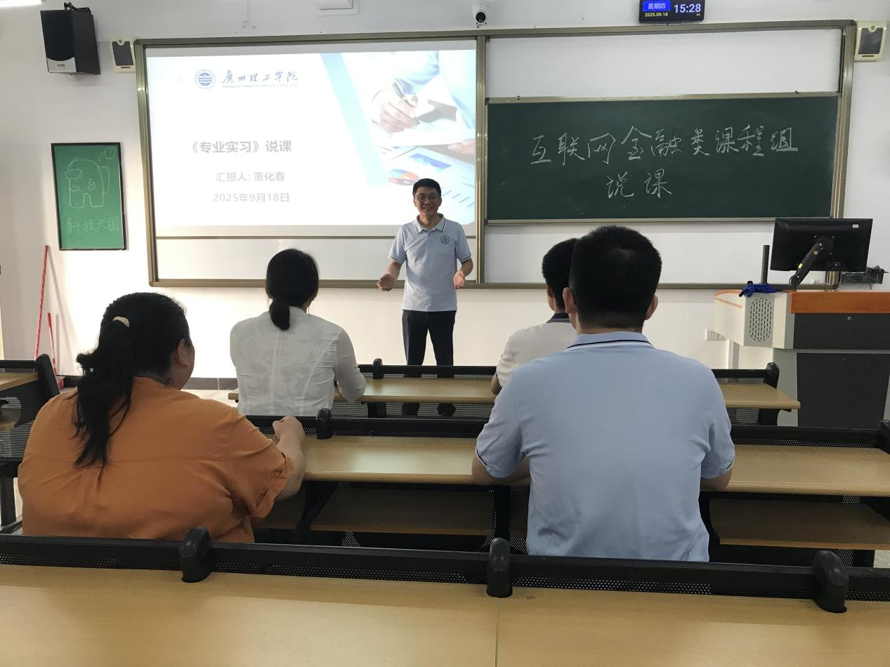(通讯员:罗牟丰)为深化课程建设内涵、提升金融类专业教学质量,凝聚课程组教学智慧,并迎接我校本科合格评估工作,2025年9月18日下午,经济管理学院金融系互联网金融类课程组在1-903课室开展说课活动。课程组全体教师参与此次活动,围绕多门核心课程与选修课程的教学设计、内容架构及质量提升展开深入研讨,为后续课程教学实践夯实基础。