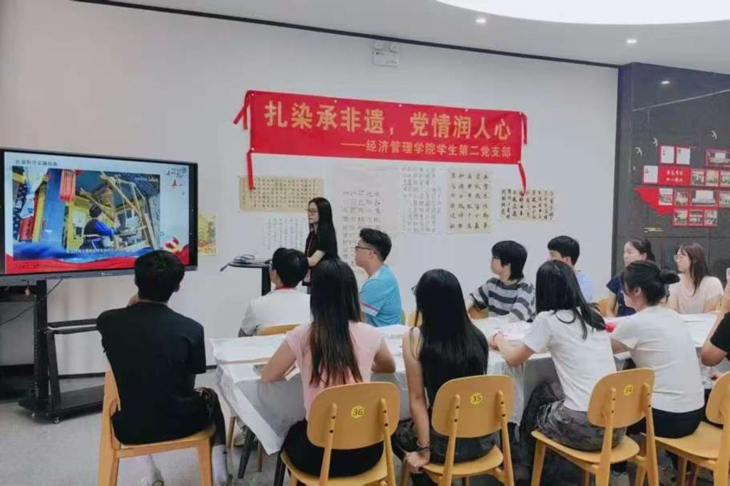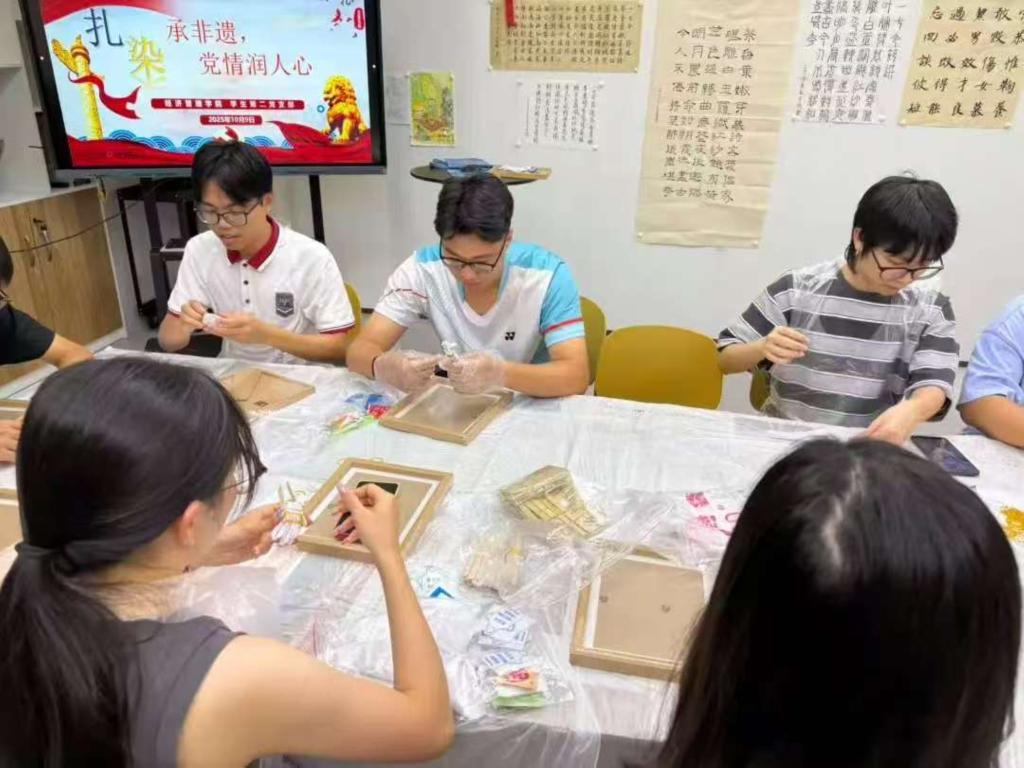 (通讯员:陈佳怡)一绢一韵,一布一染,千年非遗在指尖绽放。2025年10月9日,经济管理学院学生第二党支部在学生第九社区举办“扎染承非遗,党情润人心”党日活动,用传承千年的蓝白之美,编织新时代青年的初心画卷。