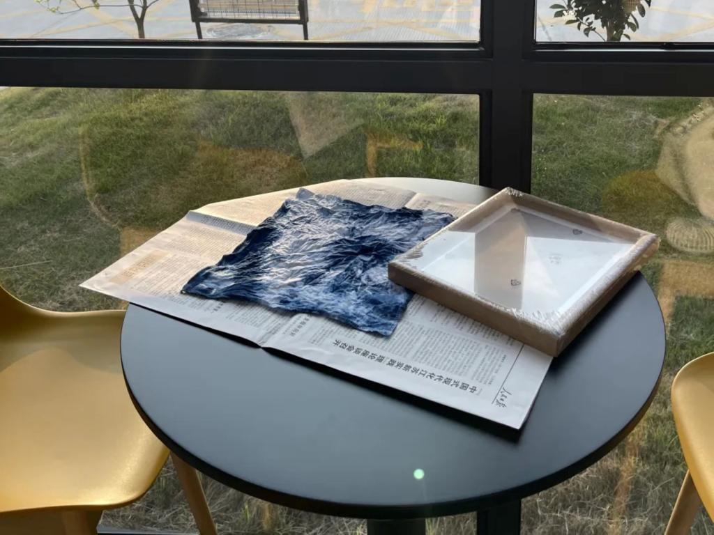 在扎染创作过程中,学生们将红色主题巧妙融入方寸织物之间,以布为纸,以染为墨,在素白织物上勾勒出充满时代温度的艺术表达。有的通过几何纹样与符号组合,传递出同心向党、团结奋进的精神内涵,有的则借助意象化的设计语言,用连绵的波纹与光芒纹展现了砥砺前行的精神图景。在“一站式”学生第九社区这一创新实践平台上,学生们不仅亲手体验了扎染技艺的古韵新姿,更在经纬交错间体会到匠心坚守与文化传承的深刻意义。每一幅亲手染就的作品,既是技艺与感悟的结晶,也承载着对红色基因的自觉传承与时代诠释。