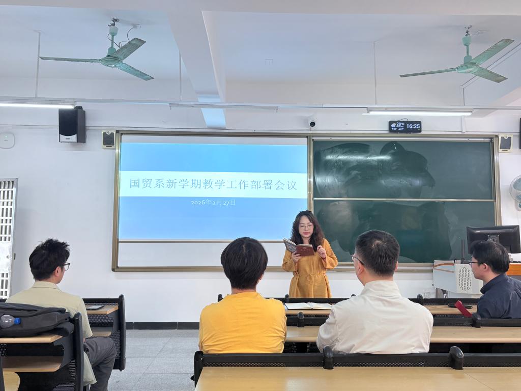 吴霜主任在总结时强调,新学期教学工作任务艰巨,全体教师要提高重视、压实责任,以务实作风落实各项工作部署;强化团队协同,充分发挥基层教学组织作用,以教研促教学、以改革提质量;紧扣时间节点,高效推进课程建设、大纲修订等工作,切实提升育人成效,推动国贸系新学期教学工作高质量开展,为学院和学校教育教学发展贡献力量。