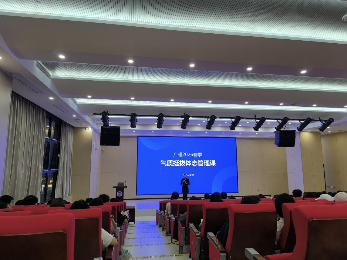 为全面提升学生形体礼仪素养,塑造优雅得体的个人形象,助力未来职场与社交发展,广州理工学院经济管理学院于2026年4月2日19:00在图书馆报告厅举办“广州理工学院2026年春季学期气质挺拔体态管理课”主题礼仪培训讲座。本次讲座特邀拥有十五年形体与商务礼仪培训经验的黄悠老师担任主讲,她兼具圣约翰勋爵、世界礼仪皇后LadyJune 高雅仪态亲传认证第一人等专业资质,同时担任ACIC国际礼仪认证考证机构负责人、中国小姐大赛评委、世界休闲小姐大赛终身培训导师,黄悠老师用丰富的行业经验为讲座注入了深厚的专业底蕴。